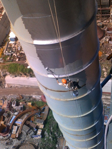 2010年5月13日,我公司與東方希望重慶水泥有限公司簽訂水泥廠(chǎng)煙囪防腐工程合同。該1000萬(wàn)噸/年水泥廠(chǎng)項(xiàng)目自備電廠(chǎng)的煙囪,高105米,直徑為4.2米,腐蝕介質(zhì)包括二氧化硫、硫酸等化學(xué)介質(zhì),最高使用溫度達(dá)180℃。
